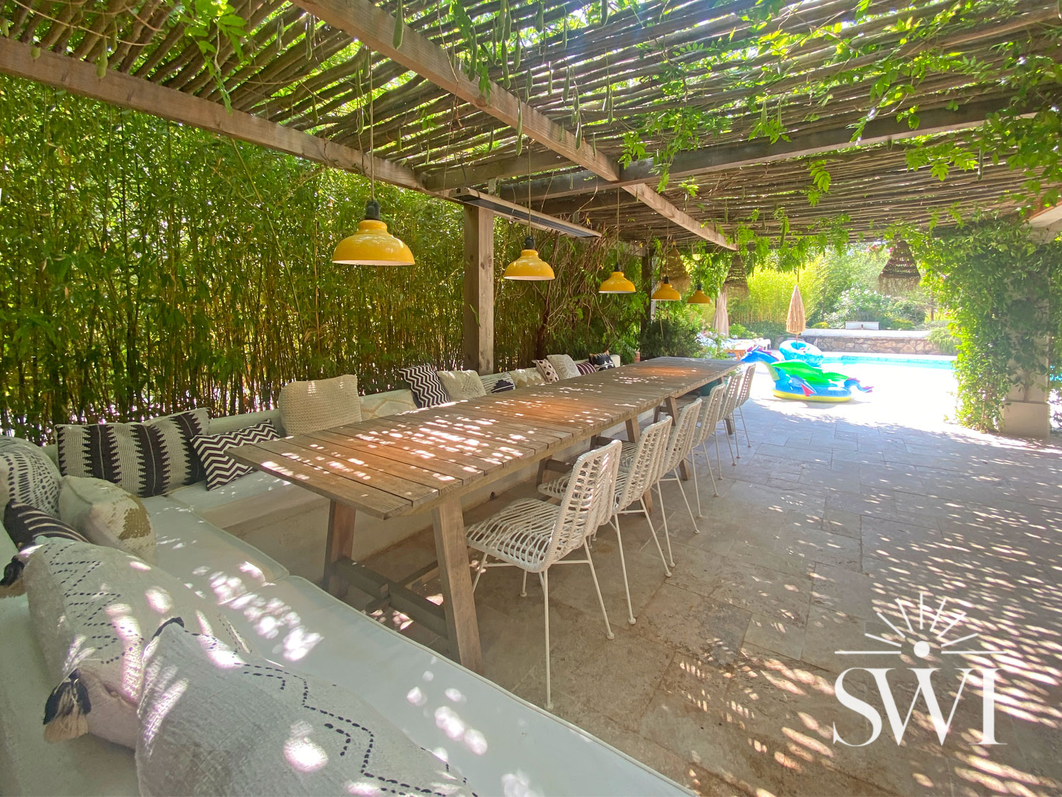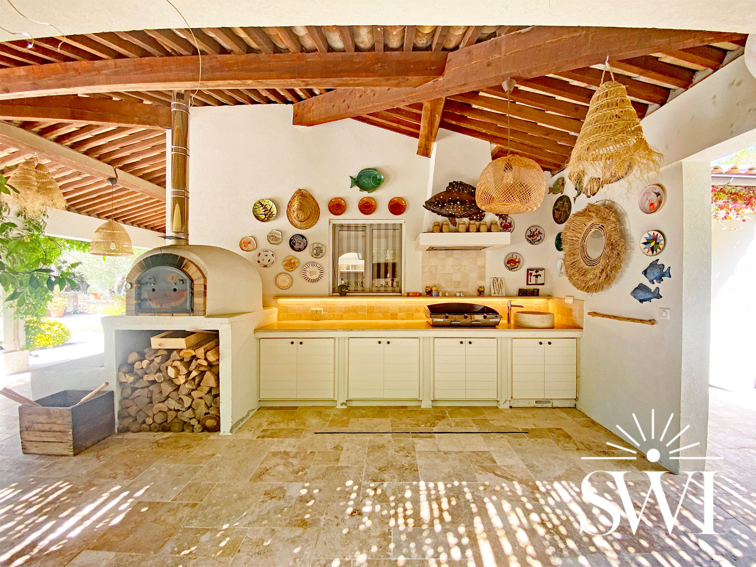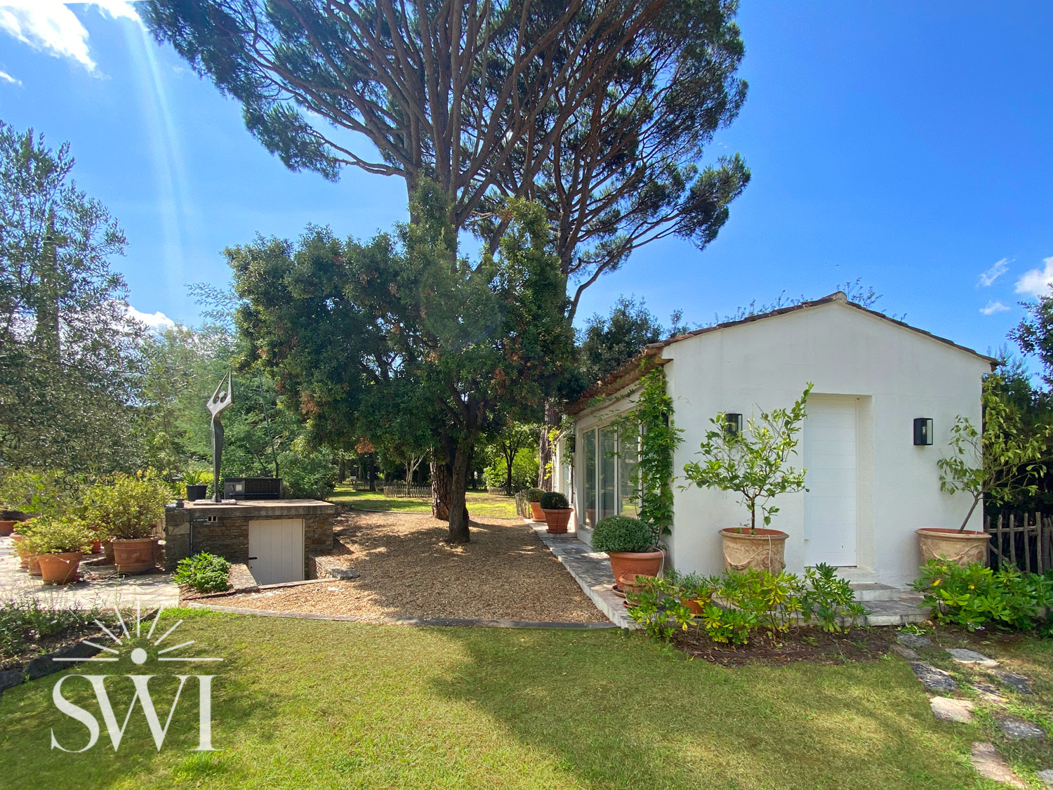 Built on a magnificent landscaped plot of 4,000 m², accessible via an alley lined with cypress trees, the villa reveals an arrival courtyard with garage, large carport, and chicken coop. The spacious covered terrace hosts a true summer living area with reception lounge, pizza oven, and plancha – ideal for entertaining.\